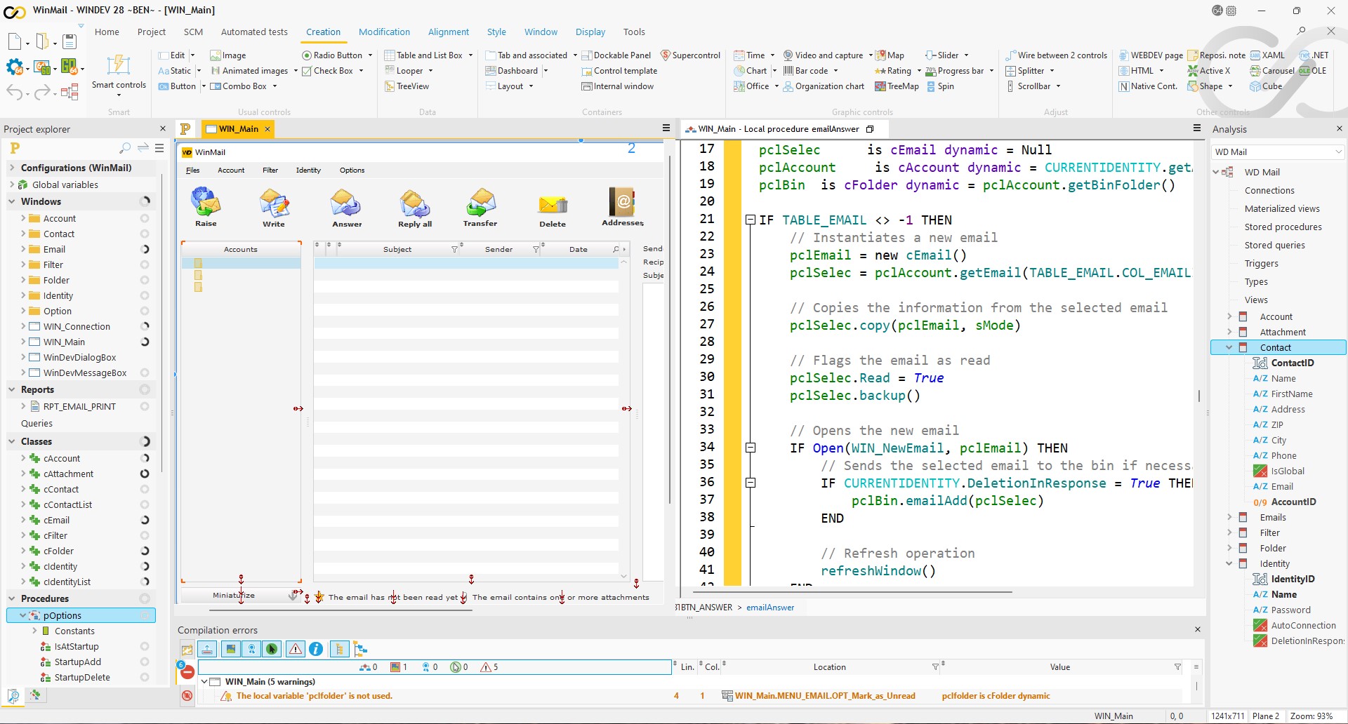 - Rapid Development: WinDev is known for its ease of use and rapid development capabilities. Its drag-and-drop interface and integrated development environment (IDE) allow developers to quickly create applications without writing extensive code manually.
